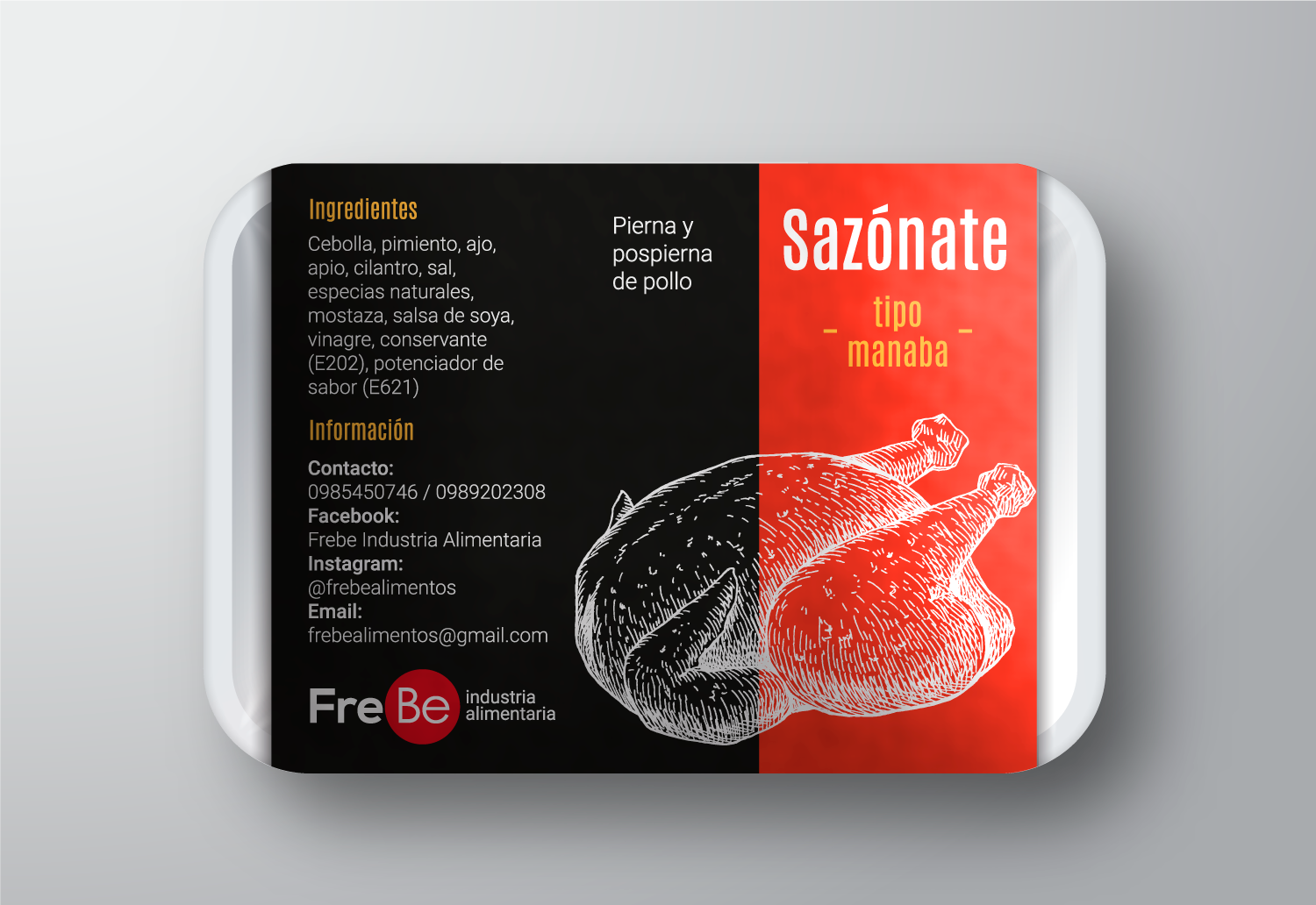The logo was designed for the processed food company Frebe. In addition, designs were made for the labels of their main products which are: Seasoned chicken, fresh shrimp and chicken nuggets.
